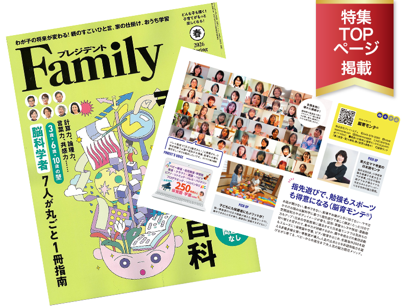 楽に、楽しく指導できる、子どもも先生もママも教室もハッピーになる脳科学のエビデンスに基づいた脳力開花メソッドが「脳育モンテ®」です。